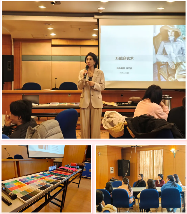 本次活动特邀专业形象美学顾问徐艺侨,她围绕服饰色彩选择、穿搭技巧、日常淡妆打造等实用内容,深入浅出地讲解了如何根据个人体型、肤色选择适合自己的色彩,并分享了实用的色彩搭配技巧和穿搭法则。