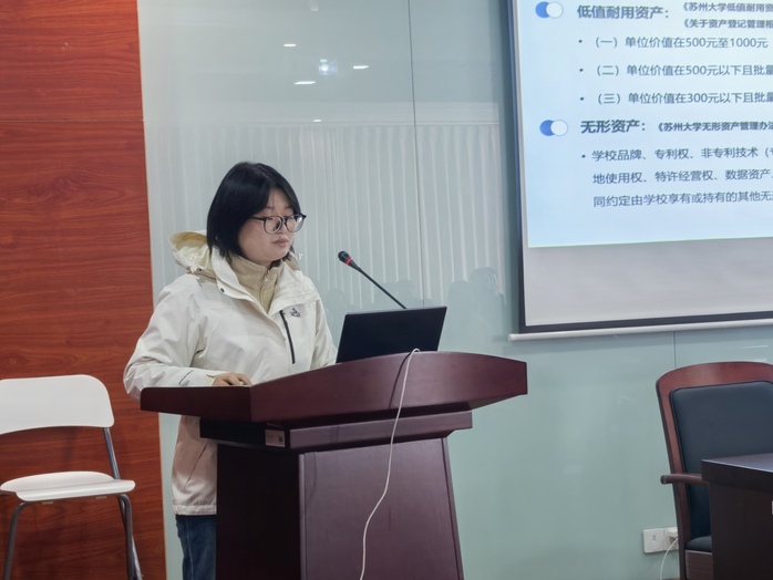 培训中,周炜玮老师围绕资产入库标准、入库登记、资产调拨、原值变动等内容进行了系统讲解与操作演示,并详细说明了固定资产、低值耐用资产、无形资产的入库条件与登记流程,演示了入库登记与资产调拨的操作步骤。