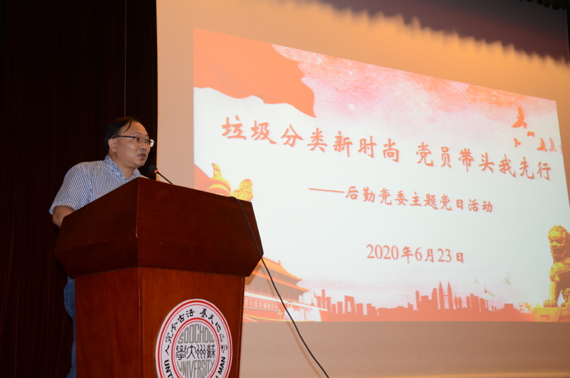 为深入贯彻习近平生态文明思想和对垃圾分类工作的重要指示精神,认真学习《苏州市生活垃圾分类管理条例》,提升对垃圾分类的知晓度、认同度、参与度,后勤党委于6月23日下午在天赐庄校区敬贤堂开展“垃圾分类新时尚,党员带头我先行”主题党日活动。