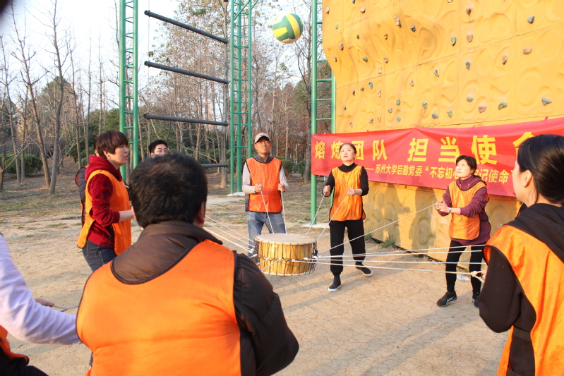 团队建设“击鼓颠球、不倒森林、协力长绳、激情团队”等项目,对于还不熟识从未合作的团队来说都是极大的考验,每个项目都需要全队队员共同研究、分工协作,只有每个队员都凝聚在一起,才能完成一个个挑战,当活动陷入僵局时还需要调整思路创新方式,在紧密合作中,四个团队都完成了艰难的任务。