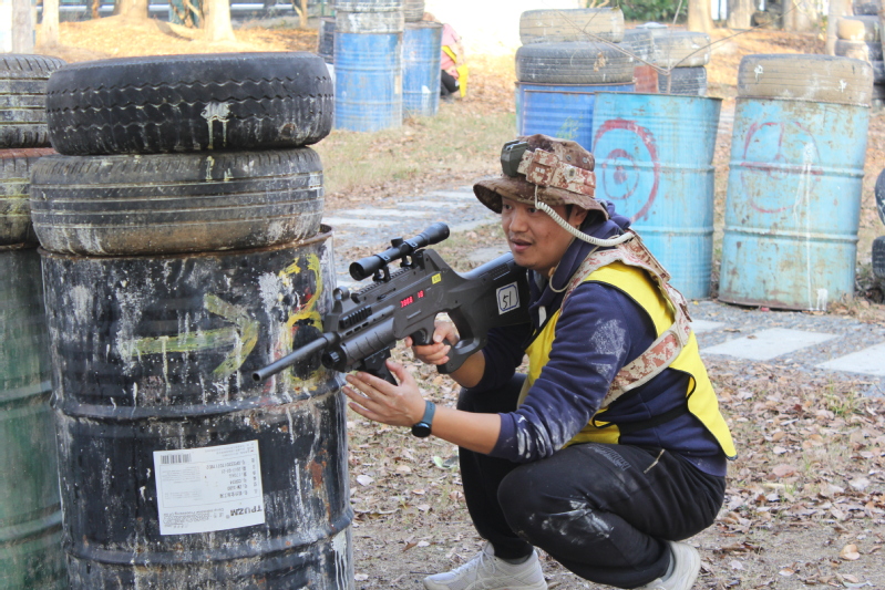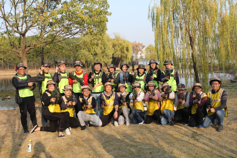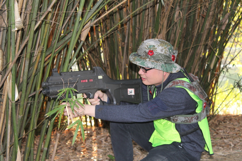 真人CS项目在专业的CS场地进行,队员们穿上小马甲,戴上头盔,手持装备枪,像一个个威武的军人般斗志昂扬。到达各自的阵地后比赛开始,大家穿梭于树林之间,个个激情高涨,真实的战场体验紧张刺激又令人兴奋,有的“狭路相逢”,有的遭遇“伏击”,有的遭遇“夺旗”……。在游戏中,队员的观察能力、反应能力、思考能力等综合素质得到了锻炼,团队的战略智慧经受了考验,大家感受到团队合作的力量,体验到攻克难关时的喜悦。