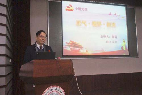 为深入学习贯彻习近平新时代中国特色社会主义思想和党的十九大精神,2018年12月7日下午,校党委常委、总会计师周高在红楼学术报告厅为财务处党支部、国有资产管理处党支部、后勤党委的全体党员讲授专题党课《正气境界 担当》。党课由后勤党委书记仇玉山主持。