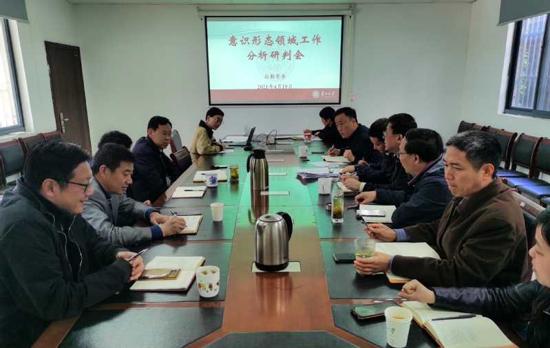 4月19日上午,后勤党委在后勤1号楼107会议室召开意识形态领域工作分析研判会,贯彻落实学校党委有关意识形态领域工作新部署、新要求,分析研判当前工作领域意识形态风险点,安排布置下一阶段意识形态领域工作,后勤全体党政领导班子成员参加会议。会议由后勤党委书记王季魁主持。