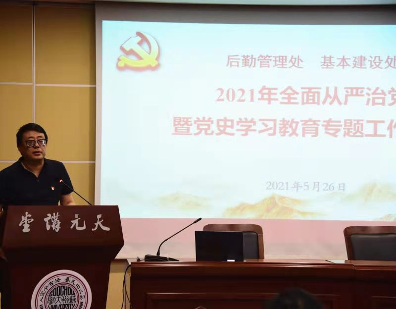 5月26日下午,后勤管理处、基本建设处2021年全面从严治党暨党史学习教育专题工作会议在天赐庄校区本部天元讲堂召开。后勤党政领导班子成员、全体职工参加会议。校党委常委、纪委书记芮国强,校纪委委员、审计处处长徐映荃,校纪委办公室副主任杨志卿应邀出席会议。会议由后勤党委副书记陈晓刚主持。